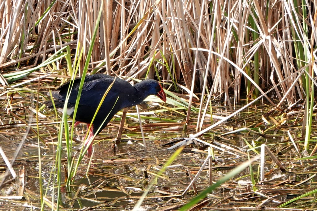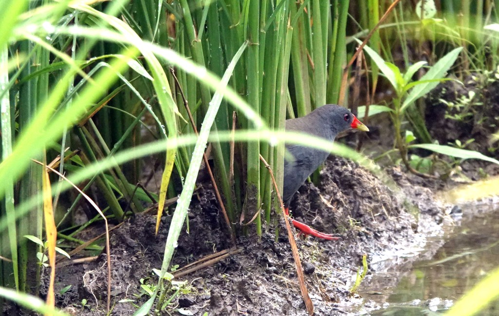 It was easy. These crakes are rarely disturbed. Hence, they respond readily. Birding groups do not try for them because it would be impossible for more than two or three people to be in position to see. Being in the swamp amidst them, even I could hear the crakes. Two approached and within minutes I had obtained great binocular views. The lighting angle, the narrow ditch and rapidly running crakes precluded photography but I was, as they say, “a happy camper.”