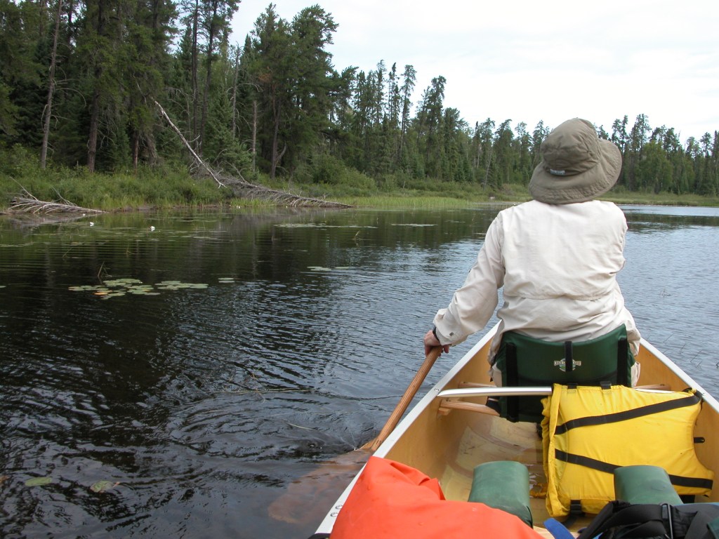 I appreciated that campsites were established. The remaining landscape was choked with deadfalls and brush or was impassable bog.  Often our paddling was through narrow passages fully engulfed in grasses and pond lilies.  The tall birches and filmy fern-like balsams were lovely.